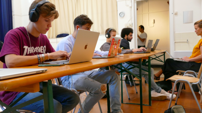 De muzikanten werden begeleid door WAAG Future Lab. Zij begonnen de dag met een lezing over de geschiedenis van computergegenereerde muziek en een inkijkje in de keuken van muziek met circuit boards. ’s Middags gingen zij aan de slag met het coderen van elektronische muziek. Aan de hand van opdrachten gerelateerd aan de gamewereld maakten ze een aantal korte composities. Om ervoor te zorgen dat het allemaal niet te makkelijk werd, kregen de jongeren opdrachten mee. Ze mochten bijvoorbeeld alleen iets maken in een zeven-kwartsmaat, of zich alleen baseren op een enkele toon, zonder andere instrumenten. Iemand anders werd gevraagd een score te maken voor een spelpersonage dat eerst vogelvrij rondloopt, en vervolgens een nieuwe ruimte betreedt. De sfeer in het muzieklokaal komt regelrecht uit de arcades van de jaren tachtig: synthesizers, samples en bits die doen denken aan Street Fighter, de eerste Mario-games en (hoe kan het ook anders) toch ook een beetje Stranger Things. Bovenop de dichtgeklapte akoestische piano worden er circuit boards aangesloten en nieuwe beats uit de grond gestampt.