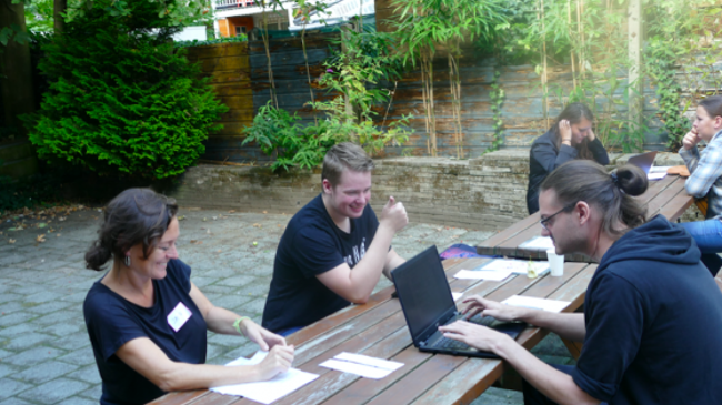 Na dit gesprek gaan de schrijvers uiteen om aan hun teksten te werken. Sommigen zitten in opperste concentratie alleen in een hoekje en tikken een Wordbestand vol aan nieuwe woorden. Anderen duiken één op één met hun schrijfbuddy de diepte in om een vraag van de schrijfopdrachten te beantwoorden. Weer anderen gaan in groepjes bij elkaar zitten en discussiëren met elkaar over de onderwerpen.