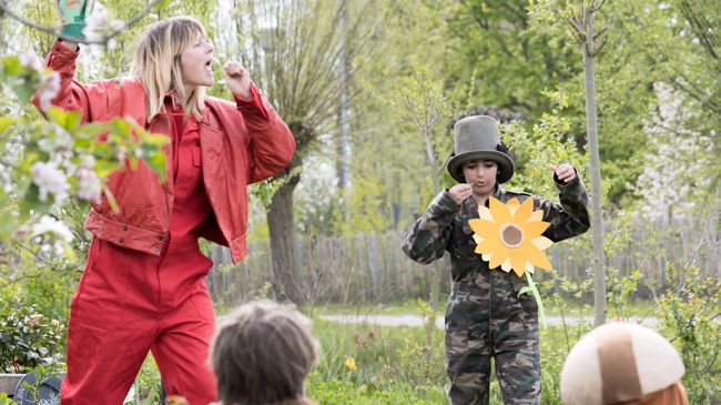 In de voorstelling 'Duizend anjers en granaten’ treffen we verschillende personages die de oorlog overleefd hebben en in gesprek gaan over hun dromen en wensen. Op 18 oktober van 17:30 tot 19:00 wordt het publiek langs een route in buitenspeelplaats Jeugdland geleid en wordt meegenomen in de spannende verhalen van onze jonge spelers Ibrahim, Dechalayna, Mouhamet, Fairouz, Souhayb, Rayan, Nazareth en Lina.