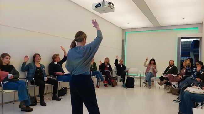 De docenten brainstormen over de manieren waarop ze de les zelf kunnen inzetten. Als het gaat om het invullen van burgerschap worstelen zij ook met het bespreekbaar maken van moeilijke onderwerpen. Bijvoorbeeld als het gaat over online en offline identiteit, culturele diversiteit en vrienden vs familie. Maar ook als het gaat over het benoemen van verschillen als iets positiefs: wat de een kan door diens lidmaatschap van een bepaalde bubbel, kan de ander niet en zo kun je elkaar dus helpen en elkaars talenten benadrukken.