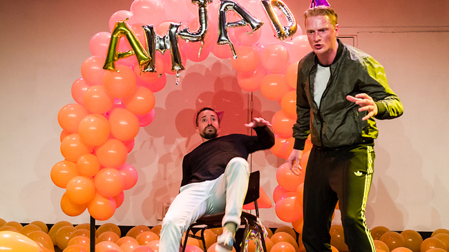 Drie personages wachten op de vluchteling Amjad, voor wie ze een welkomstfeestje aan het organiseren zijn. Maar tijdens het versieren en opblazen van de ballonnen, botsen de onderlinge extreme meningen op alle mogelijke manieren en loopt het nogal uit de hand…
