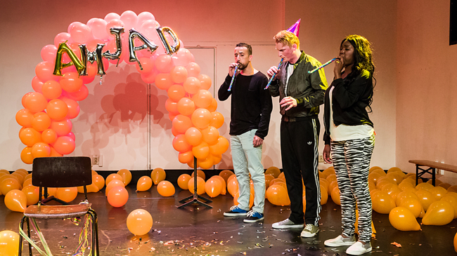 We schreven teksten met jongeren met een pittige mening: o.a. met een ge-de-radicaliseerde moslimjongere, een PVV-stemmer, twee vluchtelingen, een hippie-rapper uit het Gooi. De teksten werden vervolgens tot een jongerenvoorstelling gemaakt door professionele theatermakers met een cultureel diverse achtergrond. Spannende maatschappelijke thema’s in een fysieke en grappige voorstelling!