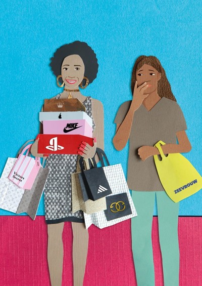 'Ik MOET ze hebben, de Playstation 5 en de iPhone 14. Als ik die dan heb, ga ik met mijn nieuwe sneakers shinen in de shopping mall. Moet je ze zien kijken dan. Ik ben de beste, de knapste, de mooiste!'